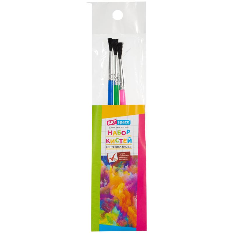 Набор кистей ArtSpace, 3шт., синтетика, круглые, № 1, 2, 3, пакет, европодвес. SB3_19282