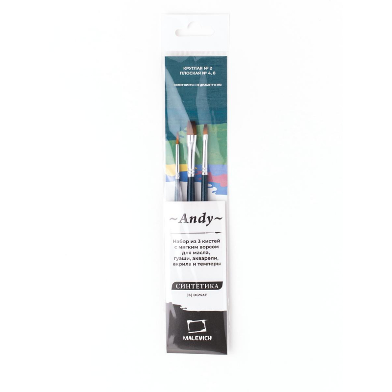 Набор кистей из синтетики Энди (3 кисти).круг № 2, плоск № 4, 8. 753903