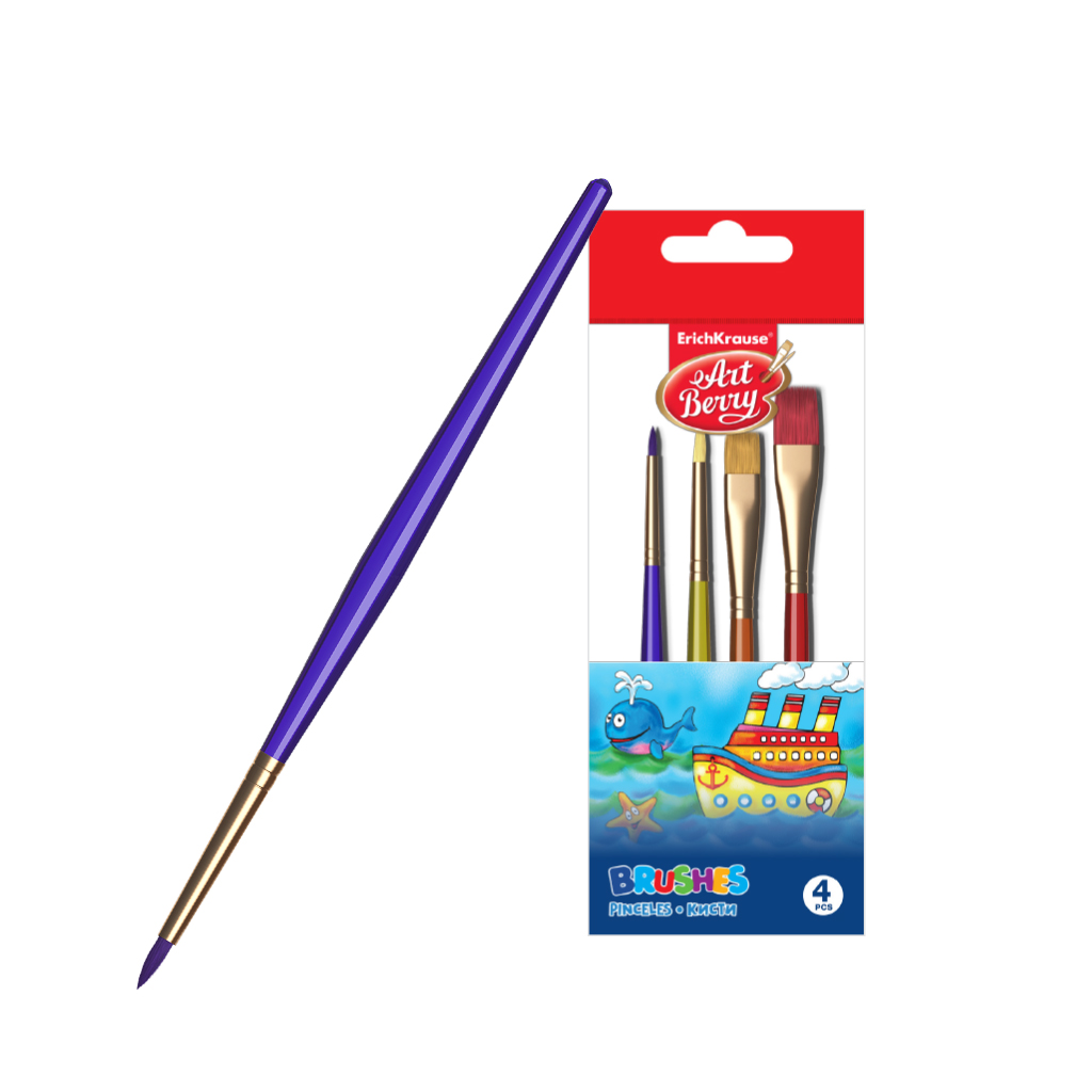 Кисти ArtBerry® для творчества, синтетика, 4 штуки, в полибеге