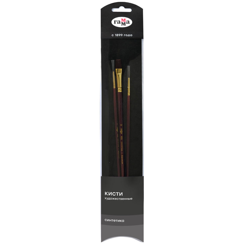 Набор художественных кистей синтетика бордовая Гамма "Вернисаж", 3шт., круглые №0, 4, плоские №10, блистер, европодвес
