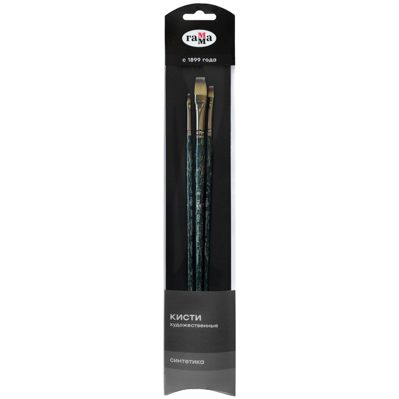 Набор художественных кистей синтетика Гамма "Модерн", 3шт., плоские №2, 6, 12, блистер, европодвес
