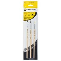 Кисти BRAUBERG, набор 3 шт. (беличья круглая № 3, пони круглая № 4, из щетины плоская № 6), блистер, 200224