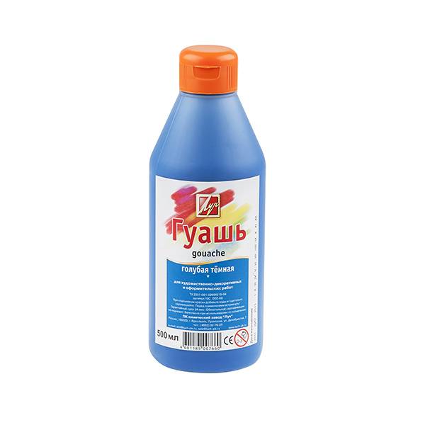 Гуашевыми красками рисовать можно не только на бумаге, как акварелью, но и на грунтованной ткани, картоне, фанере, гипсовых поверхностях. А благодаря своей кремообразной фактуре гуашь может наноситься объемными мазками и производить эффект, подобный масляной живописи.Краски изготовлены на основе натуральных компонентов и высококачественных пигментов с добавлением пищевых консервантов (не содержащих фенол). Гуашь выполнена в бутылках с большой вмещаемостью краски и предназначена для выполнения декоративно-прикладных и оформительских работ. Бутылка снабжена удобной в использовании крышкой Флип-топ с контролем дозировки краски.