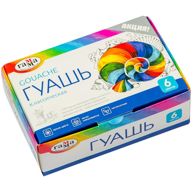 Гуашь Гамма "Классическая", 06 цветов, 20мл, картон 2210306