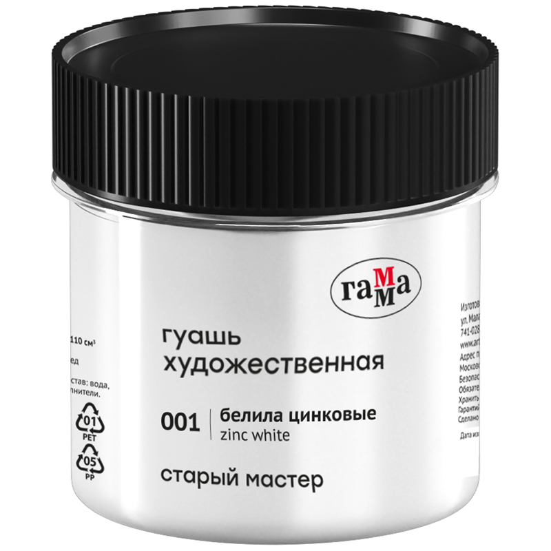 Гуашь художественная Гамма "Старый Мастер", белила цинковые, 110мл.