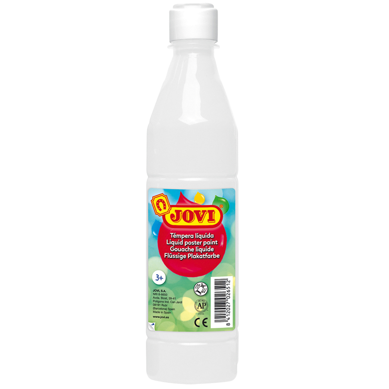 Жидкая школьная гуашь с повышенным содержаниенм пигмента, белого цвета с высокой покрывающей способностью, образует матовый, непрозрачный слой краски. Идеальна для работы по любой пористой поверхности: плотная (не глянцевая) бумага, ватман, картон, дерево, для раскрашивания просохших фигурок из пасты для лепки, застывающей на воздухе, или из папье-маше. Гуашь позволяет рисовать в различных техниках. Если сильно развести её водой, то получится почти акварельный рисунок. Экономичная большая бутылка для детских садов, школ и творческих студий. Объем бутылки – 500 мл. Страна производства – Испания.