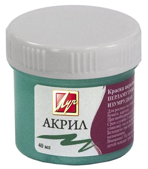 Краска акриловая ПЕРЛАМУТРОВАЯ 40 мл изумрудная: 25С1565-08 штр.: 4601185011971