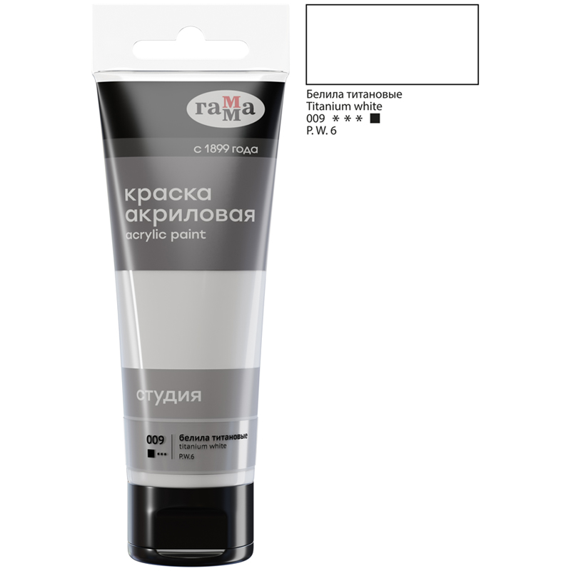 Краска акриловая художественная Гамма "Студия", 75мл, пластиковая туба, белила титановые