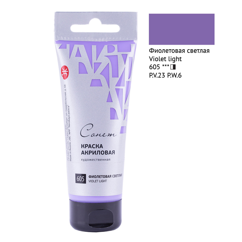 Краска акриловая художественная Сонет, 75мл, глянцевая, туба, фиолетовый светлый