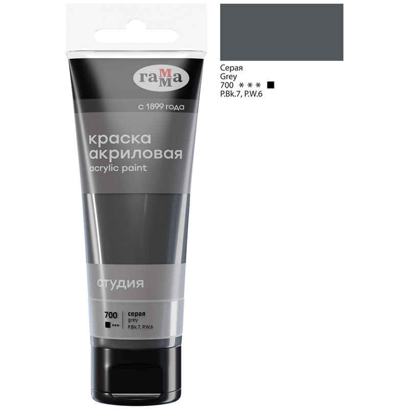 Краска акриловая художественная Гамма "Студия", 75мл, пластиковая туба, серая
