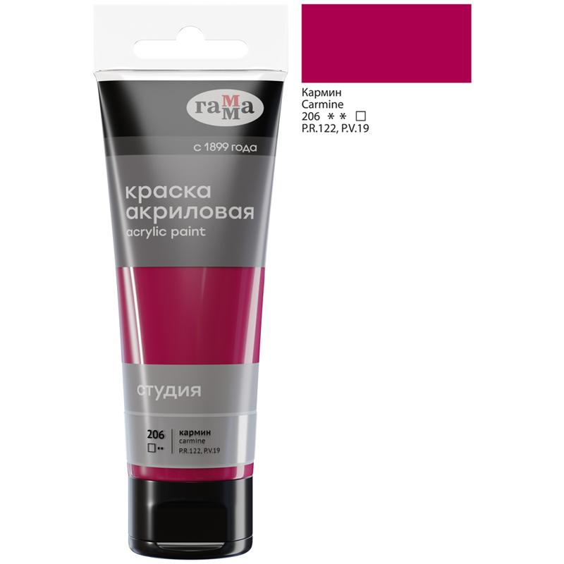 Краска акриловая художественная Гамма "Студия", 75мл, пластиковая туба, кармин