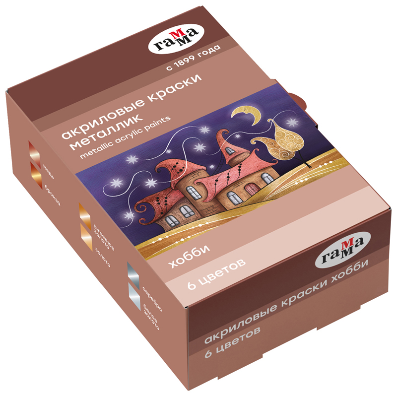 Краски акриловые декоративные Гамма "Хобби", 6 цветов, 20мл, картон. упак., металлик