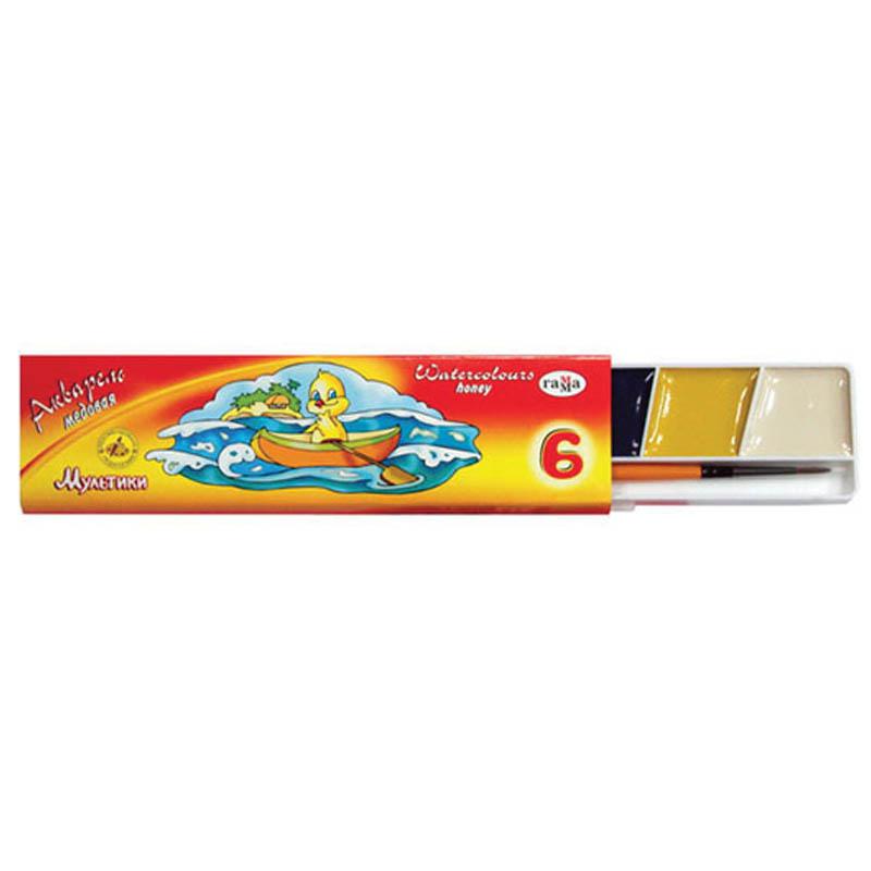 Акварель "Мультики" 06 цветов, с кистью, картон: 211047 штр.: 4600395011276
