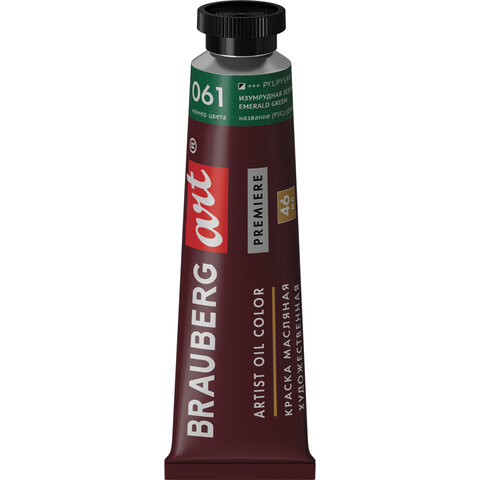 Краска масляная художественная BRAUBERG ART PREMIERE, 46 мл, профессиональная серия, ИЗУМРУДНАЯ ЗЕЛЕНАЯ, 191427