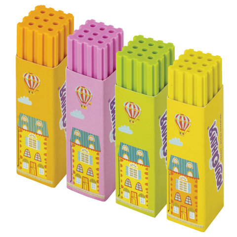 Ластик ЮНЛАНДИЯ "Башенки", 64х15х15 мм, ассорти, термопластичная резина, держатель, 228719