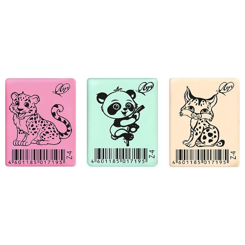 Ластик Луч ZOO 35x25x8 мм пастельный в ассортименте