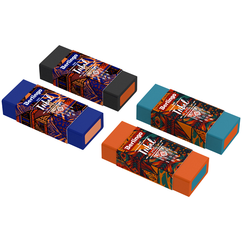 Ластики Berlingo "Tribe" выполнены из ECO-PVC. Не токсичны. Прекрасно справляются с линиями от чернографитного карандаша, не оставляют следов и грязных разводов после себя. Не повреждают бумагу. Каждый ластик упакован в картонный держатель и пленку, которые защищают ластик от грязи и пыли. У каждого ластика есть штрих-код. 4 цвета ассорти. Поставляются в дисплей боксе.