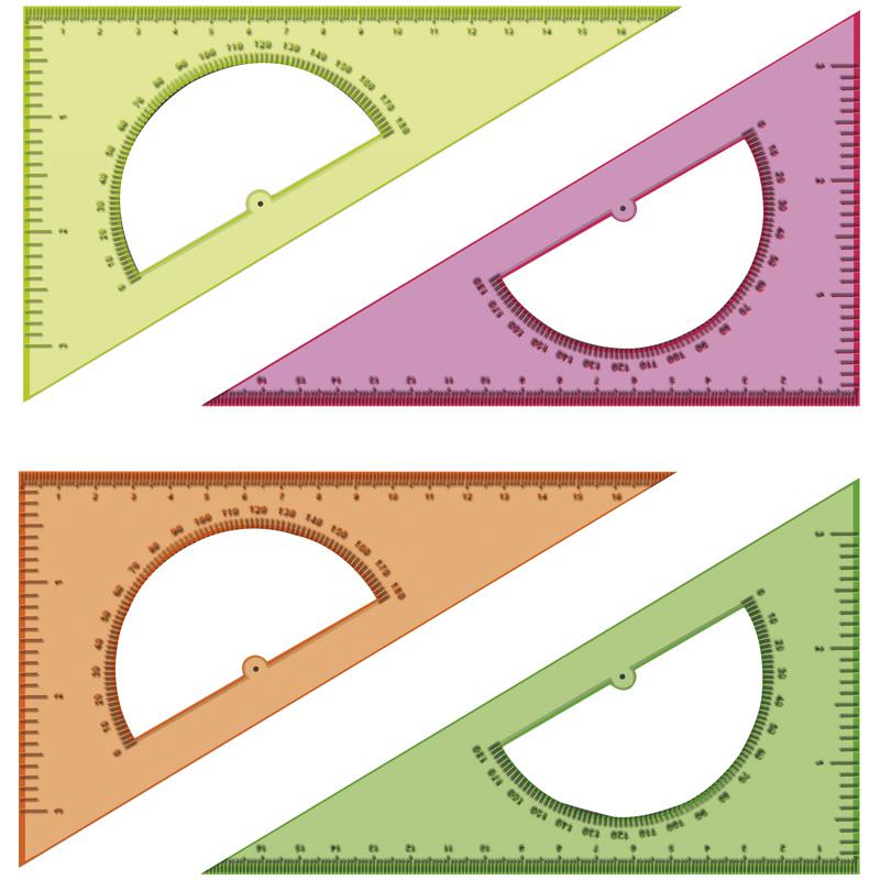 Треугольник 30°, 16см, прозрачный флуоресцентный, 4цв., с транспортиром: ТК01