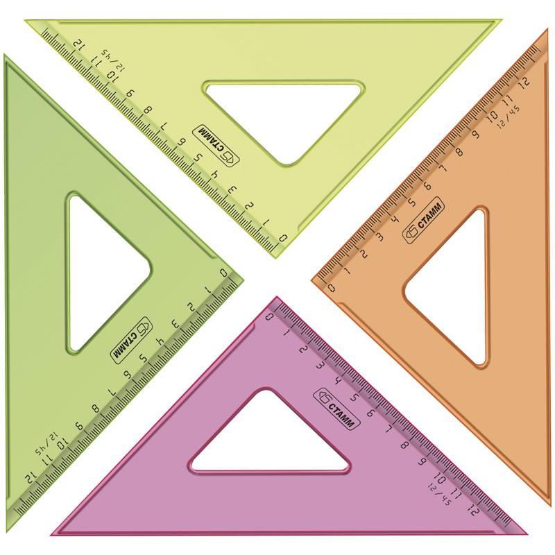 Треугольник 45°, 12см Стамм, прозрачный флуоресцентный, 4цв. ТК44