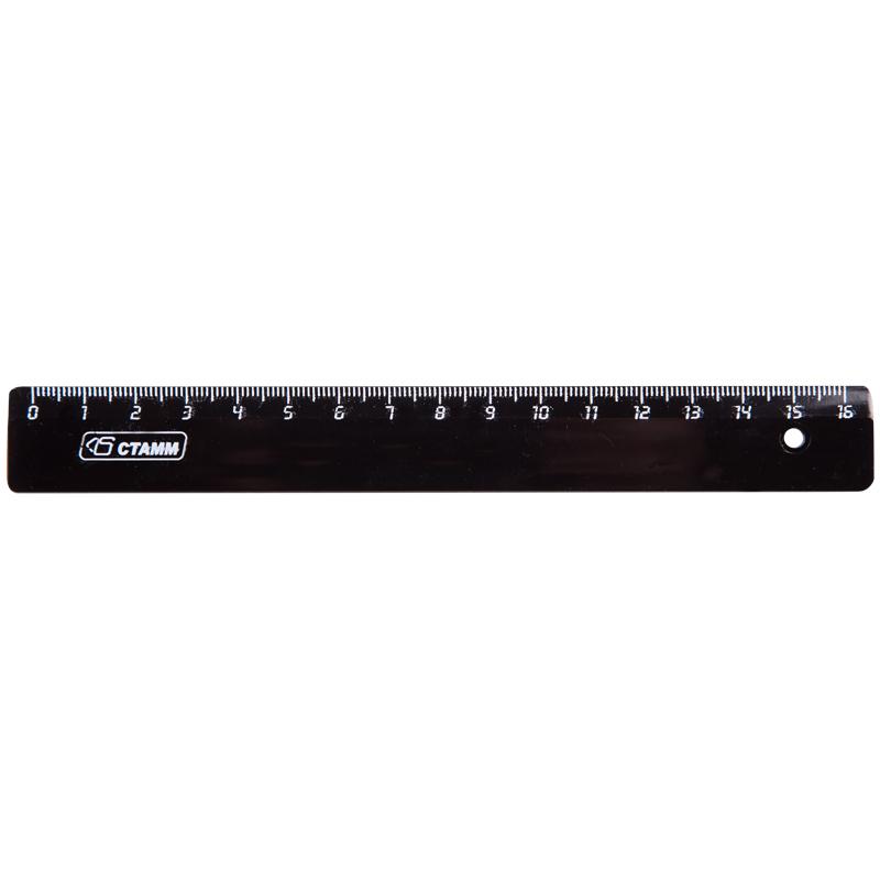 Линейка 16см Стамм, пластиковая, черная ЛН04