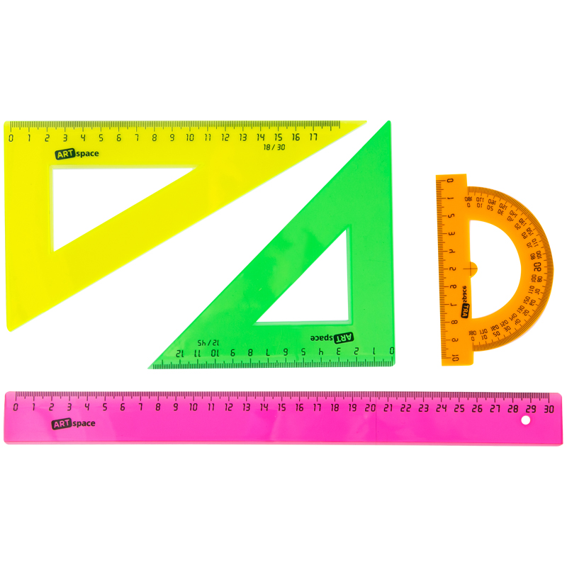 Набор чертежный большой ArtSpace, (треуг. 2шт., линейка 30см, транспортир), прозр. флуоресцентный 256254