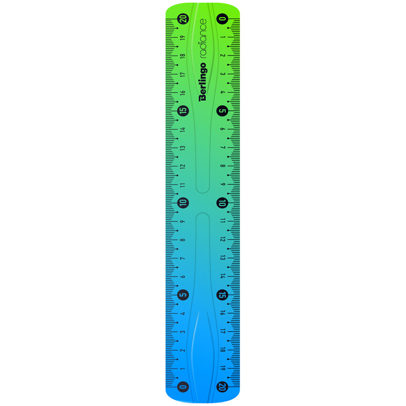 Линейка 20см Berlingo "Radiance", пластиковая, гибкая, голубой/зеленый градиент, европодвес