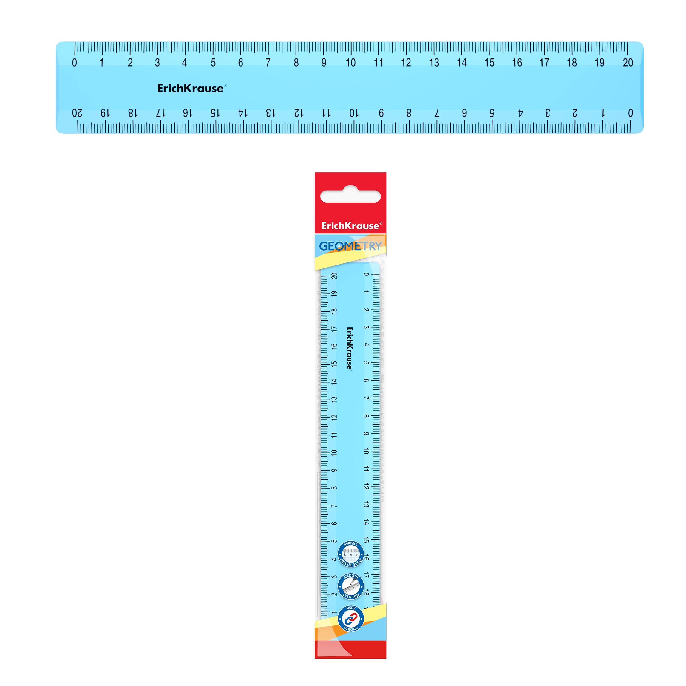Линейка пластиковая ErichKrause® Pastel, 20см, голубой, в флоупаке
