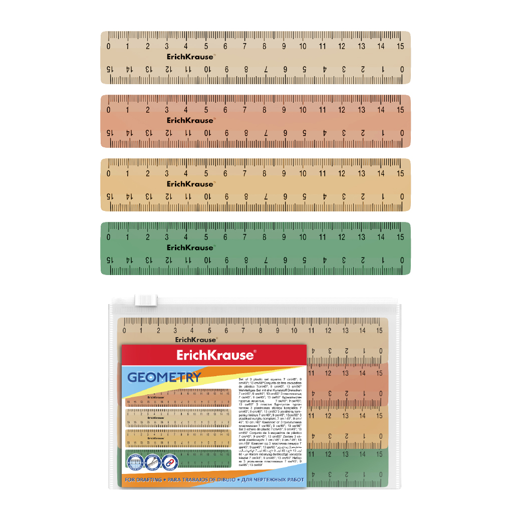 Набор из 4 пластиковых линеек ErichKrause® Powder, 15см, ассорти из 4 цветов, в zip-пакете