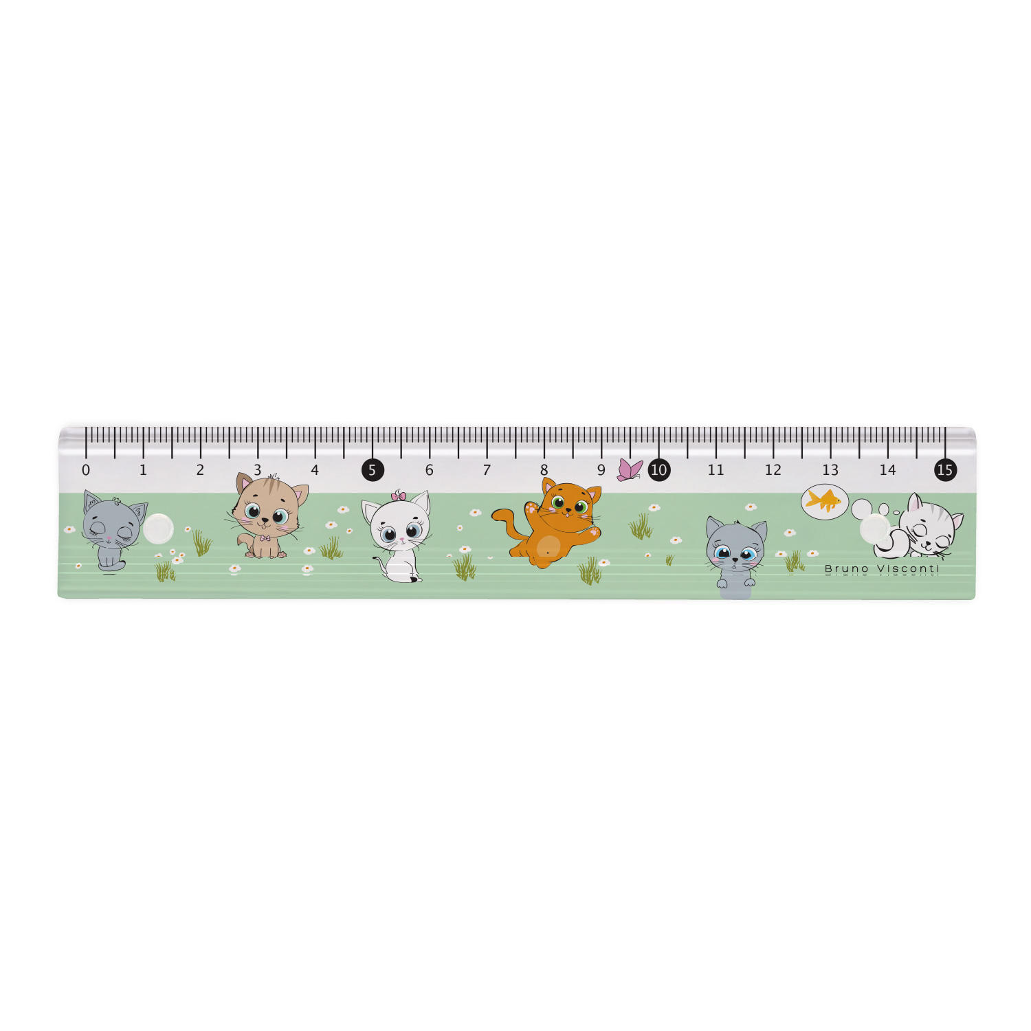 ЛИНЕЙКА ПЛАСТИКОВАЯ С АНТИСКОЛЬЗЯЩИМИ ВСТАВКАМИ "HappyGraphix. Кошечки" 15 CМ