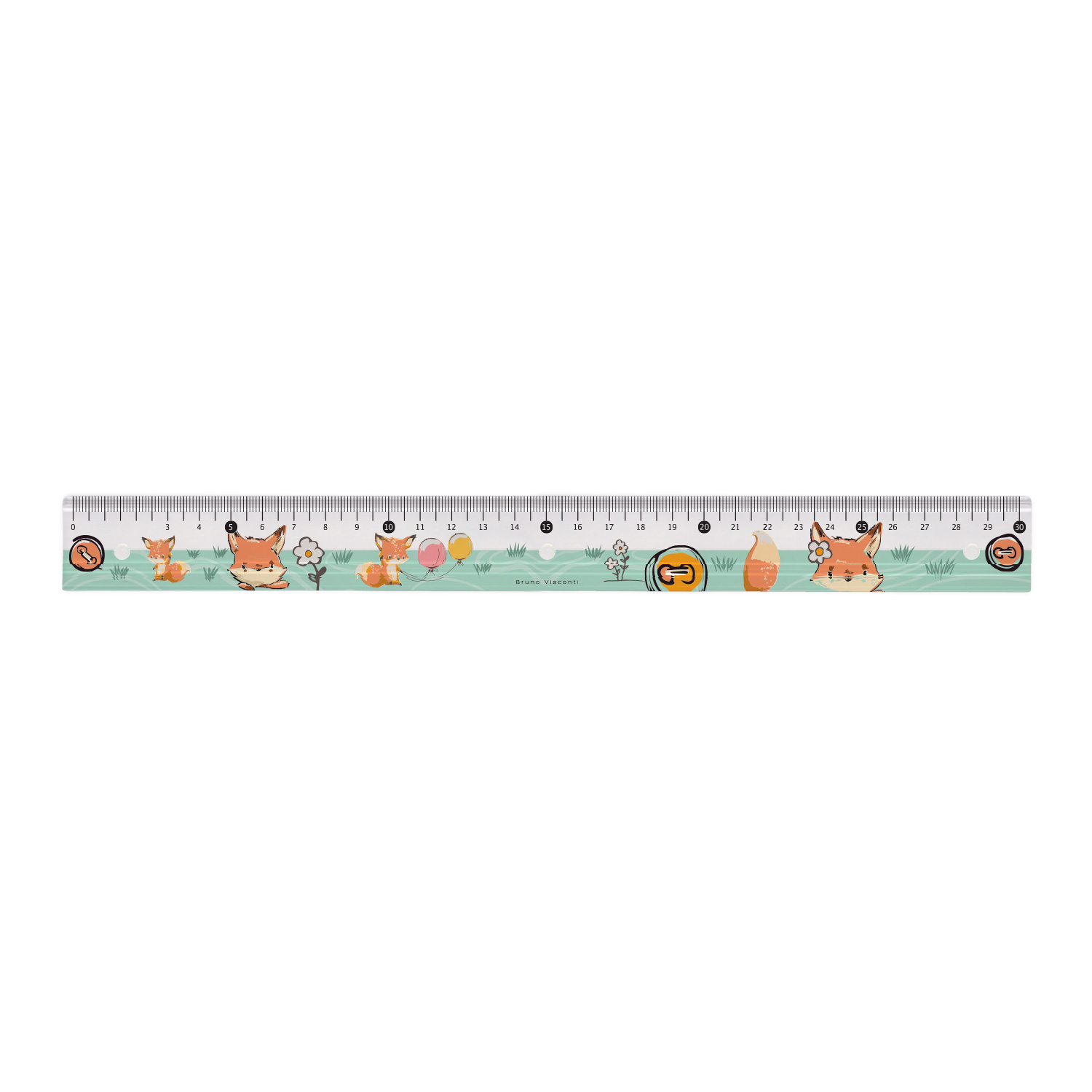ЛИНЕЙКА ПЛАСТИКОВАЯ С АНТИСКОЛЬЗЯЩИМИ ВСТАВКАМИ "HappyGraphix. Лисенок с шариком" 30 CМ