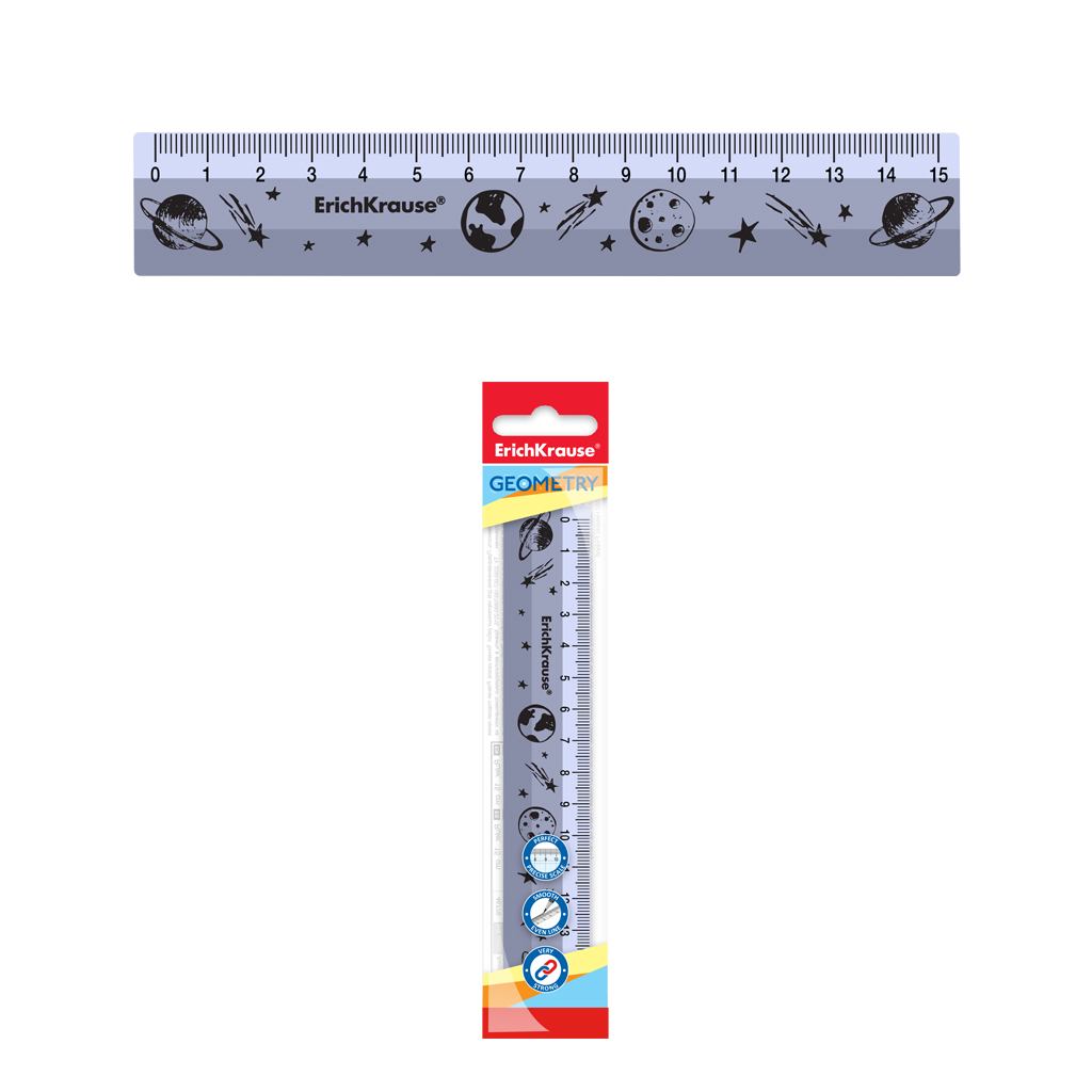 Линейка пластиковая Erich Krause® Outer Space, 15см, серебряная, во флоупаке