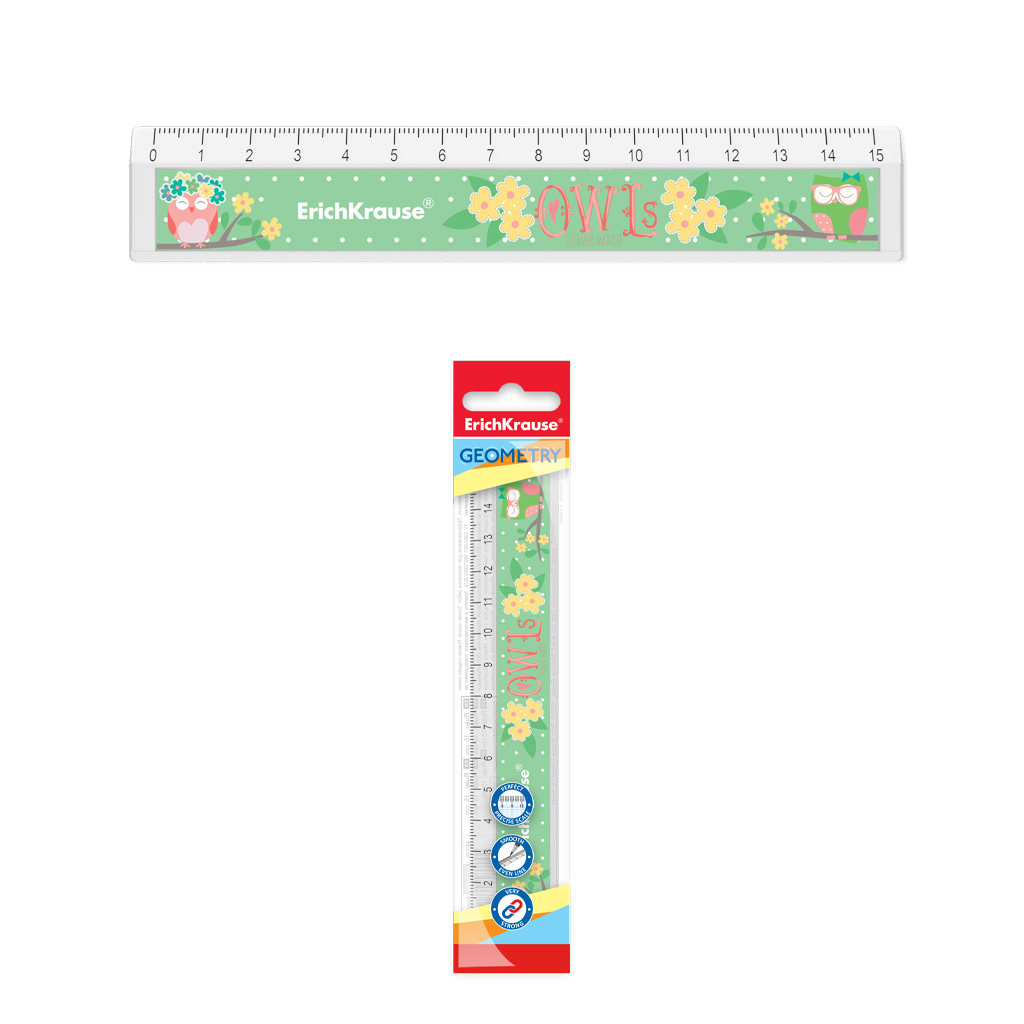 Линейка с выемкой пластиковая Erich Krause® Flower Owl, 15см, во флоупаке