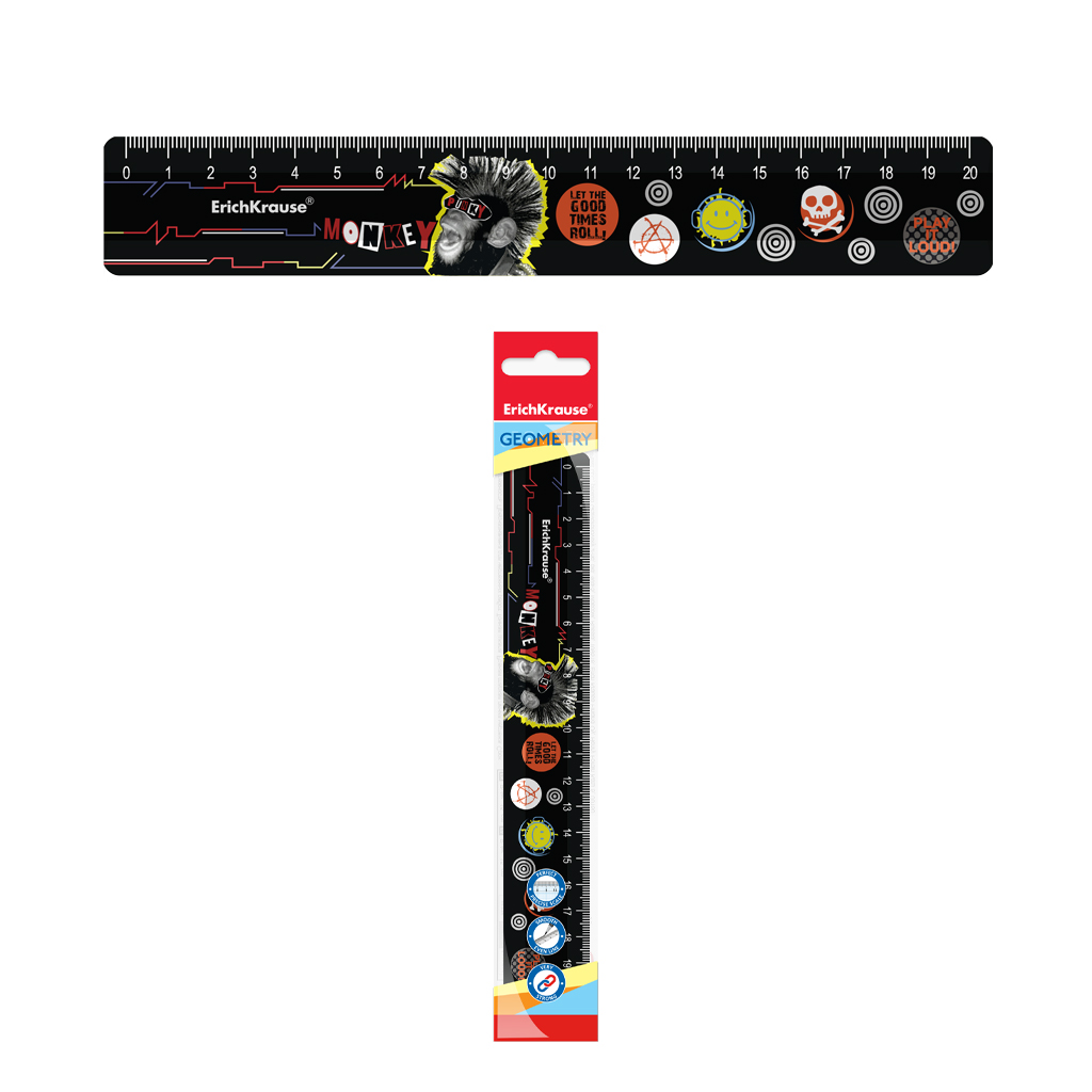 Линейка пластиковая ErichKrause® Punky Monkey, 20см, во флоупаке