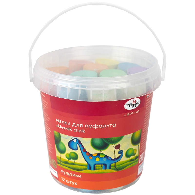 Набор из 12 круглых мелков ГАММА серии «Мультики» подходит для рисования на асфальте и любой шероховатой поверхности и состоит из 6 цветов: белый, желтый, зеленый, синий, красный, оранжевый. Длина — 10 см, диаметр — 22 мм. Удобная форма и мягкое письмо. Натуральный состав на основе мела, гипса, воды и пигментов, без выраженного запаха, средняя твердость. Следы мелков легко счищаются с рук. Набор упакован в пластиковое ведро. Большие наборы мелков оптимальны для творческого отдыха всей семьей или групповых занятий. Воспитатели и педагоги используют цветные мелки для рисования и подвижных игр на улице. НЕ РЕКОМЕНДОВАНО ДЛЯ ПИТАНИЯ