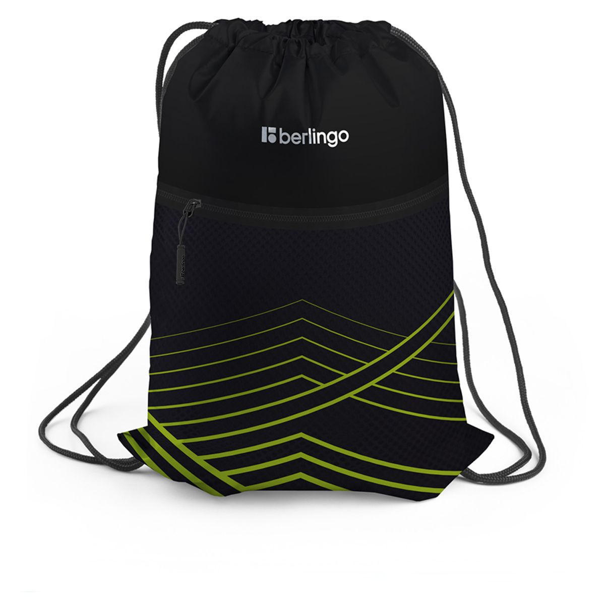 Мешок для обуви 1 отделение Berlingo "Black and green geometry", 360*470мм, карман на молнии