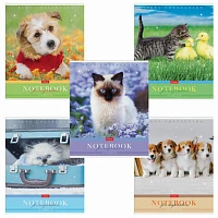 Тетрадь А5 48 л. HATBER скоба, клетка, обложка картон, "Усы, лапы, хвост" (5 видов в спайке) 48Т5В1
