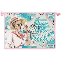 Папка для тетрадей BRAUBERG, А4, 1 отделение, ткань, молния сверху, Girls, 229407