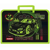 Арт.90507 Папка для тетрадей с ручками для тетрадей "Street racing" на молнии, пластик, А4