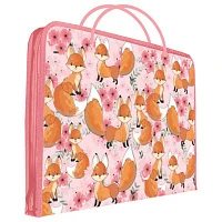 Папка для труда на молнии с ручками ПИФАГОР А4, 1 отделение, пластик, откидная планка, органайзер, ручки-шнурок, "Foxes", 270876