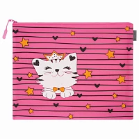 Папка для тетрадей A4 BRAUBERG, мягкий, водонепроницаемая молния, "Cat", 34х26 см, 229262
