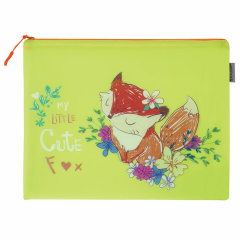 Папка для тетрадей A4 BRAUBERG, мягкий, водонепроницаемая молния, "Fox", 34х26 см, 229261