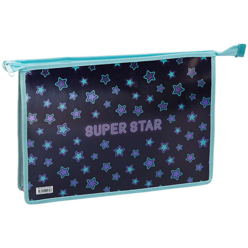 Папка для тетрадей 1 отделение, А4, ArtSpace "Super Star", ламинированный картон, фольга, на молнии
