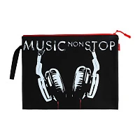 ПАПКА НА МОЛНИИ, ЧЕРНАЯ. "MUSIC NON STOP", СИЛИКОН, Ф.А4. 34 х 26 СМ