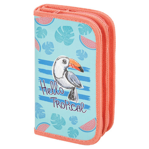 Пенал ПИФАГОР, 2 отделения, ламинированный картон, 19х11 см, "Tropical", 270168