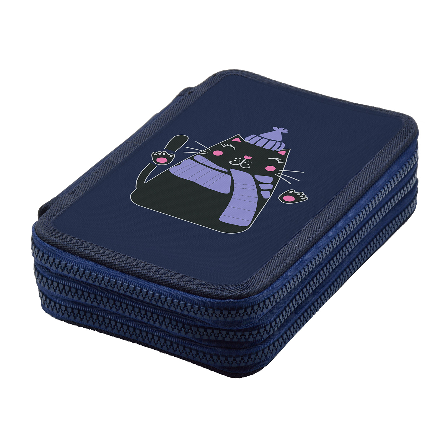 ПЕНАЛ НА МОЛНИИ СИНИЙ "SWEET CAT", ТРИ ОТДЕЛЕНИЯ, 200 х 130ММ