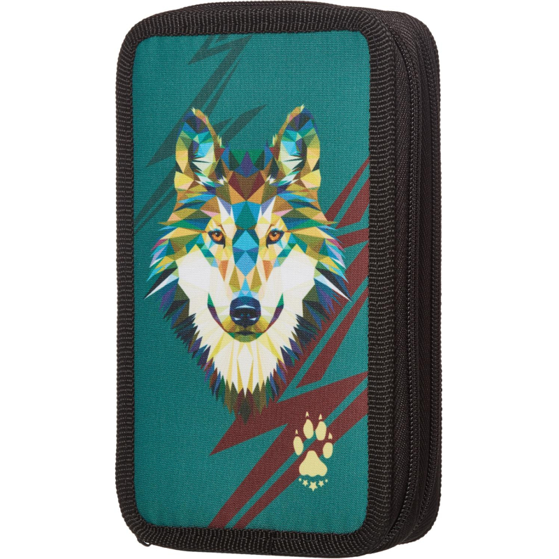 Пенал №1School Волк 2 отд., ткань, 190х110 мм, ПКТ 11-20
