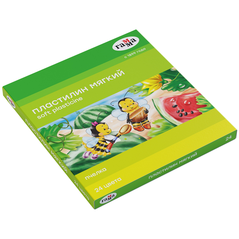 Пластилин восковой мягкий Гамма "Пчелка", 24 цвета, 360г, со стеком, картон. упак.
