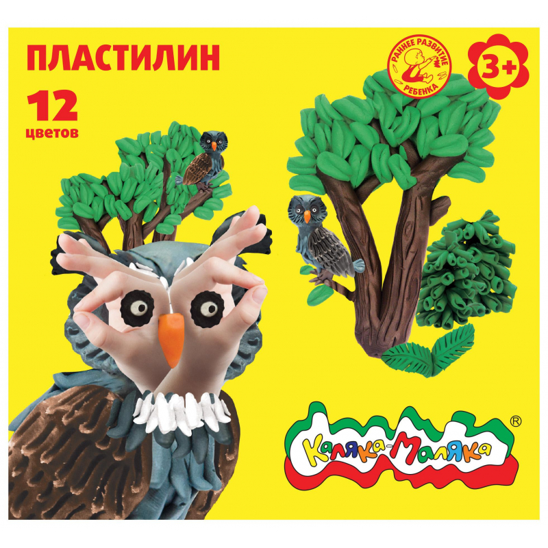 Пластилин Каляка-Маляка 12 цв. 180 г со стеком, ПКМ12