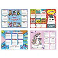 Расписание уроков и звонков А4, ЮНЛАНДИЯ, для девочек, ассорти (4 вида), бумага 170 г/м2, 129781