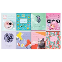 Тетрадь общая А5, 96л, клетка, скрепка, обл.карт. ВДлак, Кототерапия, 5 дизайнов.Т965790